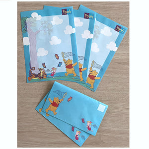 Ensemble de papeterie Disney Winnie l'ourson à la poursuite des papillons bleu - 6 feuilles / 6 enveloppes