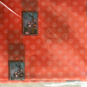 Cet ensemble de papier de soie orange Looney Tunes présente des points orange clair sur un fond orange vif avec des images dispersées de Bugs Bunny sur un timbre-poste de première classe d'une valeur nominale de 32 cents en 1997 lorsque ce papier de soie à collectionner a été lancé. Fabriqué aux États-Unis. Bel objet de collection !