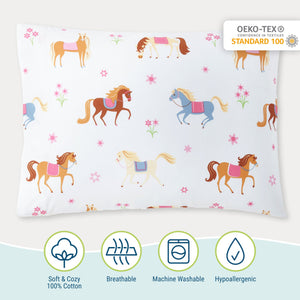 Taie d'oreiller pour enfants en microfibre à motif de chevaux 20" x 30"