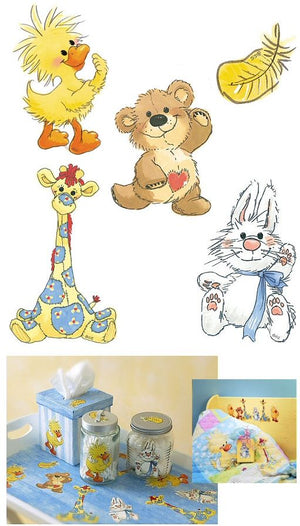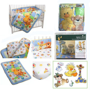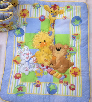 Ensemble de literie pour berceau Witzy's Treasures du zoo Little Suzy's Vintage 5 pièces Collection de chambre d'enfant Couverture pour bébé Doudou Canard Ours Girafe Animaux et jouets Unisexe 2000 Rare