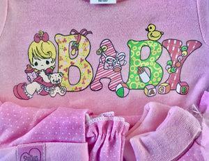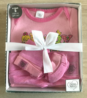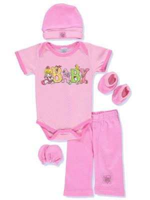 Ensemble de vêtements pour bébé fille Precious Moments 5 pièces rose Layette Coffret cadeau nouveau-né 0-3 mois - Body Pantalon Chapeau Mitaines Baby Shower