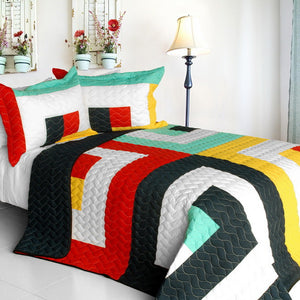 Parure de lit pour adolescent à motifs géométriques rouge, noir, blanc, vert et jaune, ensemble de couette pour lit double ou queen size, couvre-lit moderne