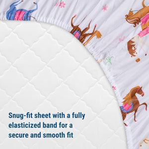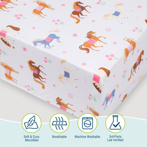Lot de 2 draps-housses en microfibre pour berceau de bébé à motif de poneys