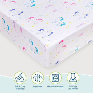 Lot de 2 draps-housses en microfibre pour berceau de bébé à motif de poneys