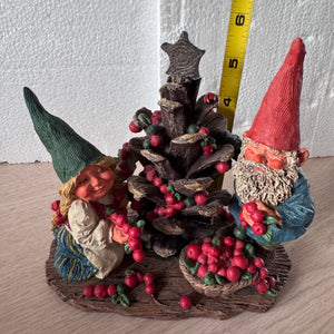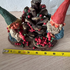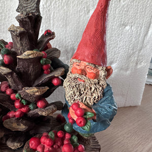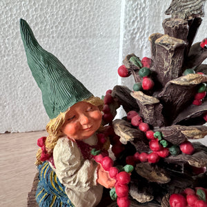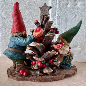 Classic Forest Garden Gnome 5.5" Andreas and Ava Decorating Christmas Cone Tree Statue Resin New Vintage Collectible Figurine by Rien Poortvliet Netherlands 1995