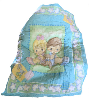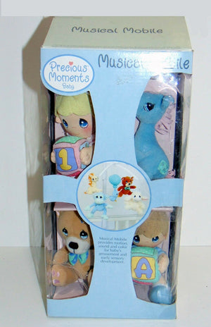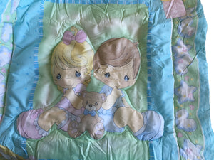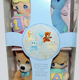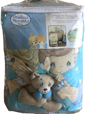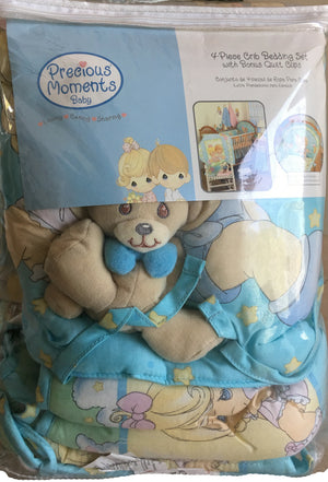 NEW Vintage 5 PC Precious Moments Welcome Baby Nursery Collection Crib Bedding Set Boy Girl Toys Bear Hearts & Stars Unisex with Musical Mobile