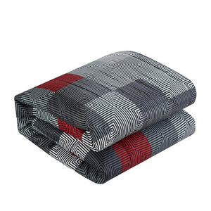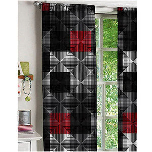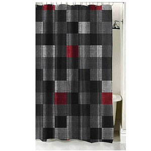 Red Black Grey Pixel Geo Blocks Latitude Shower Curtain or Window Curtains Panels Set Modern Geometric Masculine Pattern